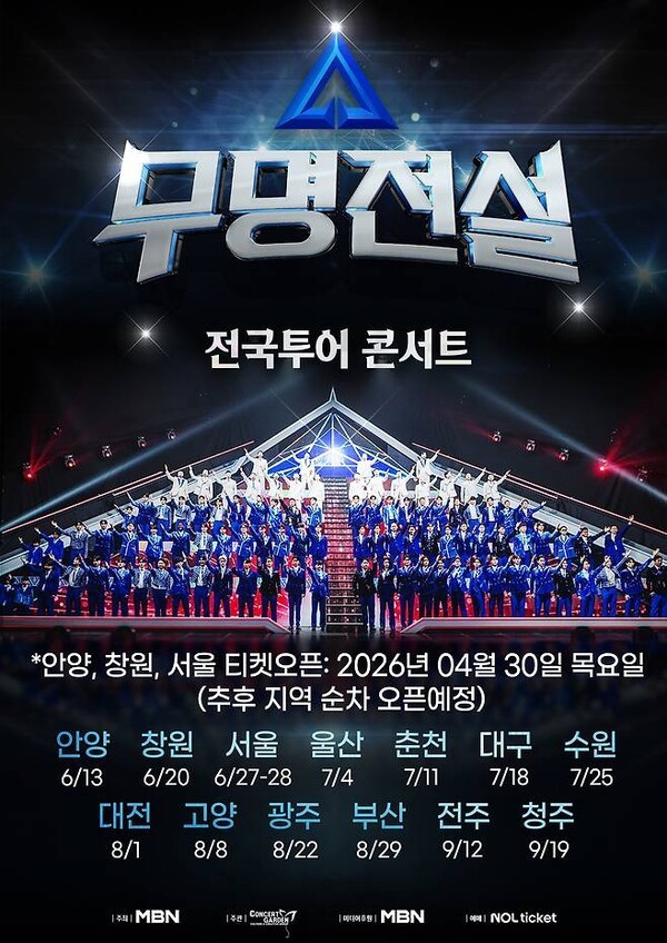 특히 이번 투어는 9월까지 울산, 춘천, 대구, 수원, 대전, 고양, 광주, 부산, 전주, 청주 등 전국 주요 도시를 빠짐없이 훑는 대장정으로 기획됐다. 연말까지 약 20여 개 지역 방문이 예정돼 있어 사실상 2026년 하반기 트로트 공연 시장을 ‘무명전설’이 선점하겠다는 포석으로 풀이된다.